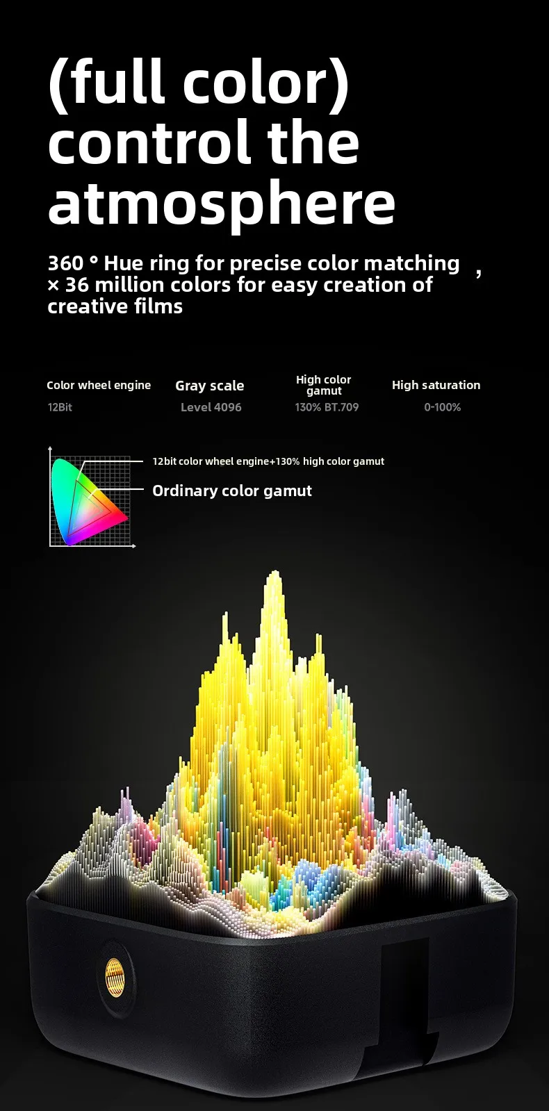 Unleash endless creative possibilities with 16 million+ color options and 360° RGB hue control. Switch between warm/cool whites (2500K–9000K) or dynamic effects like strobe, gradient, and scene-specific presets to elevate your live streams, photos, or videos.