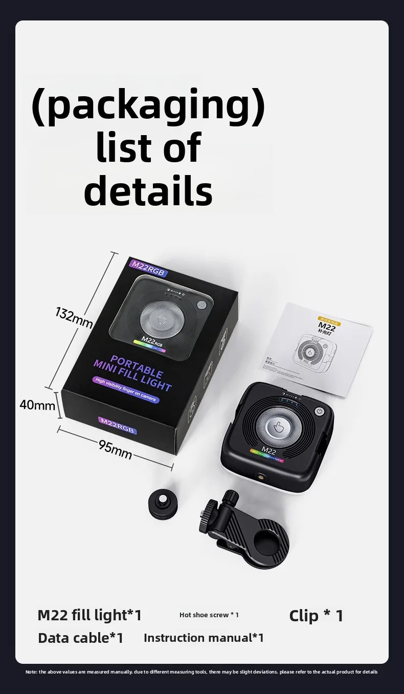 The M22 RGB Light is designed for portability, making it a perfect companion for photographers and videographers on the go. Its compact size allows it to easily fit in your pocket, yet it packs a powerful punch when it comes to lighting quality. This makes it ideal for those spontaneous photo sessions or live broadcasts when you need reliable light quickly. You can take it anywhere, ensuring you are always ready to capture the moment.