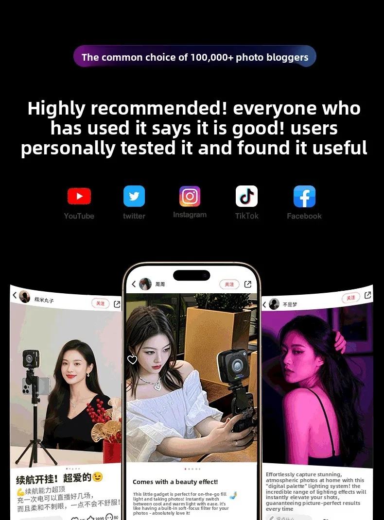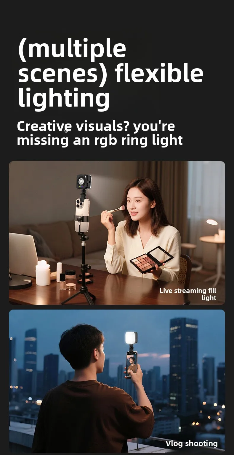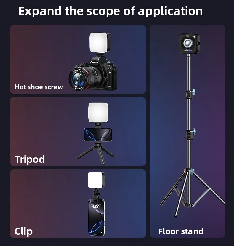 Equipped with a cold shoe mount and magnetic back, it attaches effortlessly to cameras, tripods, or metal surfaces. Use it as a fill light, accent light, or background enhancer for portraits, product shots, or live broadcasts.