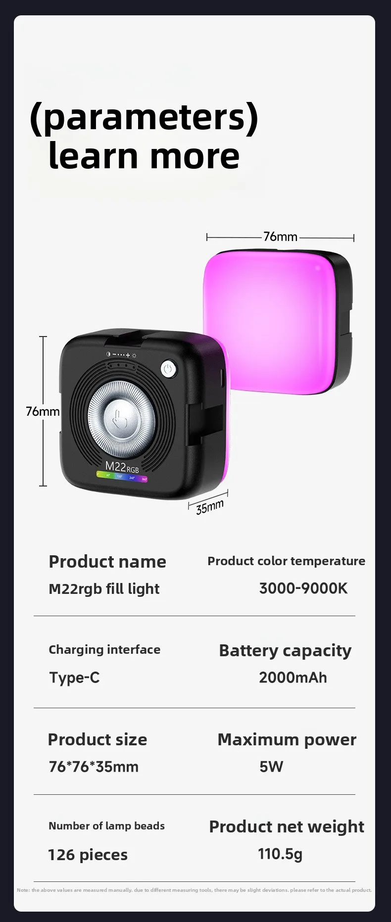 The M22 RGB Light is not just another portable light; it is engineered specifically for live streaming and professional photography. Its magnetic suction feature ensures it can be easily attached to various surfaces, providing flexibility for different shooting angles. Whether you are live streaming a gaming session, conducting an online class, or capturing high-quality photos, this RGB light enhances your visual presentation, making your content more engaging and professional.