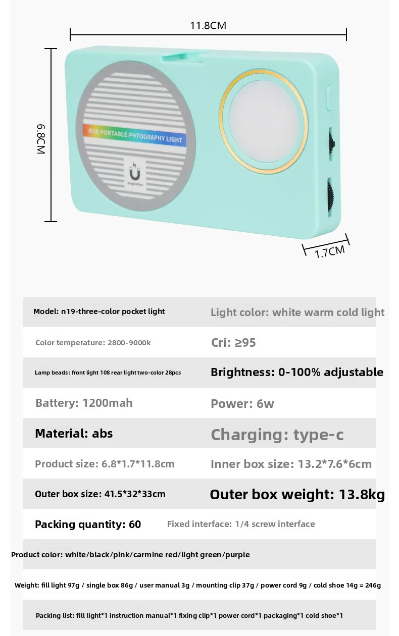 Use it as a standalone handheld lamp or magnetically attach it to your phone, tripod, or metal surface. The ergonomic design ensures comfortable grip for steady shots or hands-free operation. It can also be mounted on the camera with a hot shoe for use.