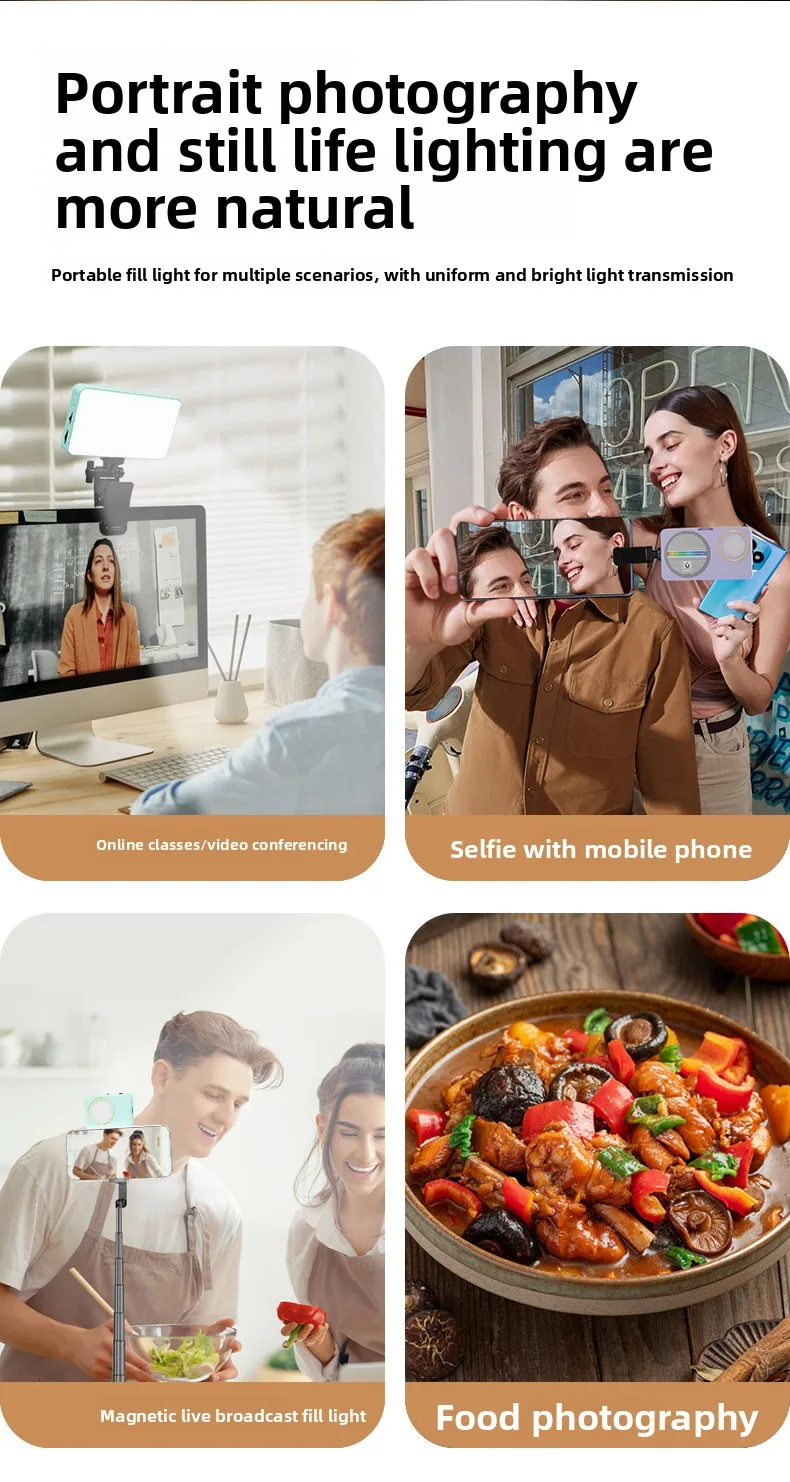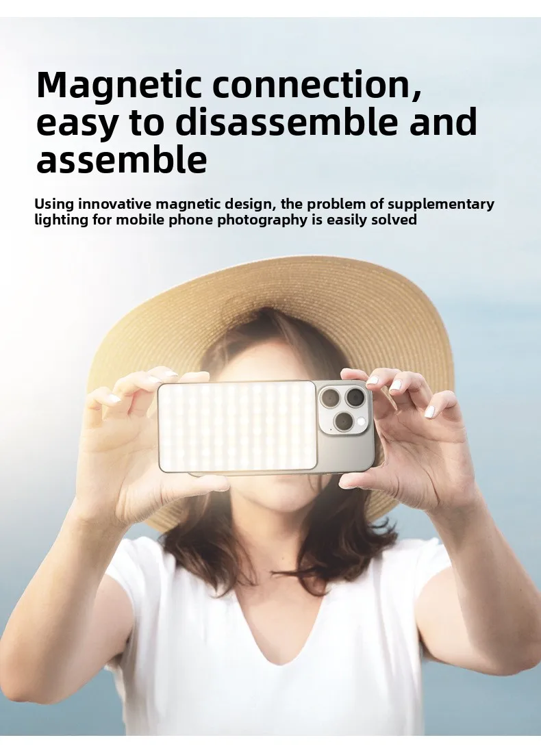 Compact and lightweight, this pocket-sized LED light attaches securely to any smartphone or metal surface via a built-in magnetic mount. No clips or adhesives needed—just snap it on and go! Ideal for travel, vlogging, or spontaneous selfies.