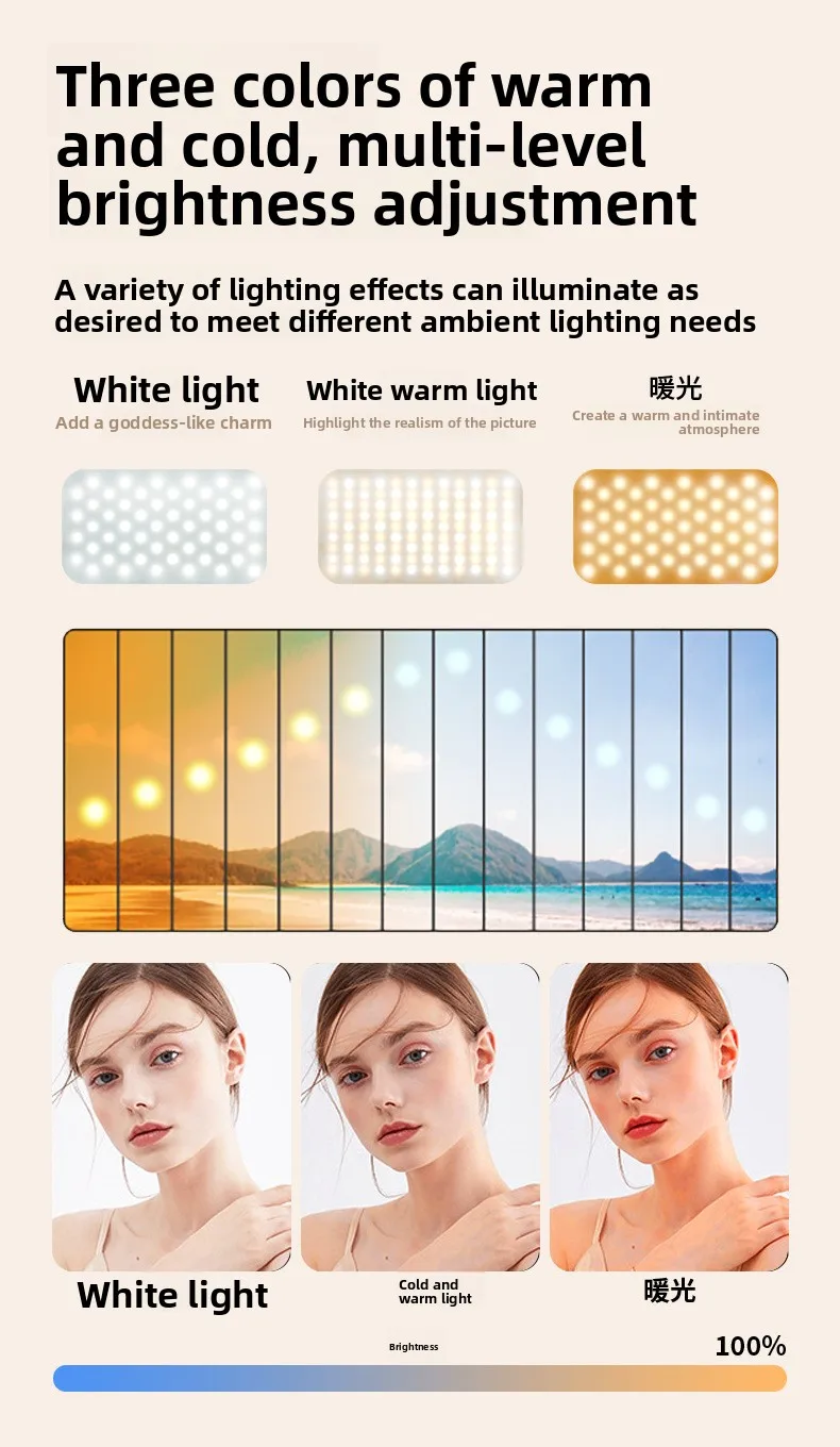 Customize your lighting with 3 color modes (warm white 2800K, natural white 5500K, cool white 9000K) and stepless dimming. Achieve studio-quality results in any environment, from golden-hour glow to bright daylight effects.