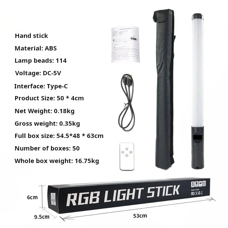 便携式摄影灯补光灯 炫彩RGB手持补光棒 照明灯具直播自