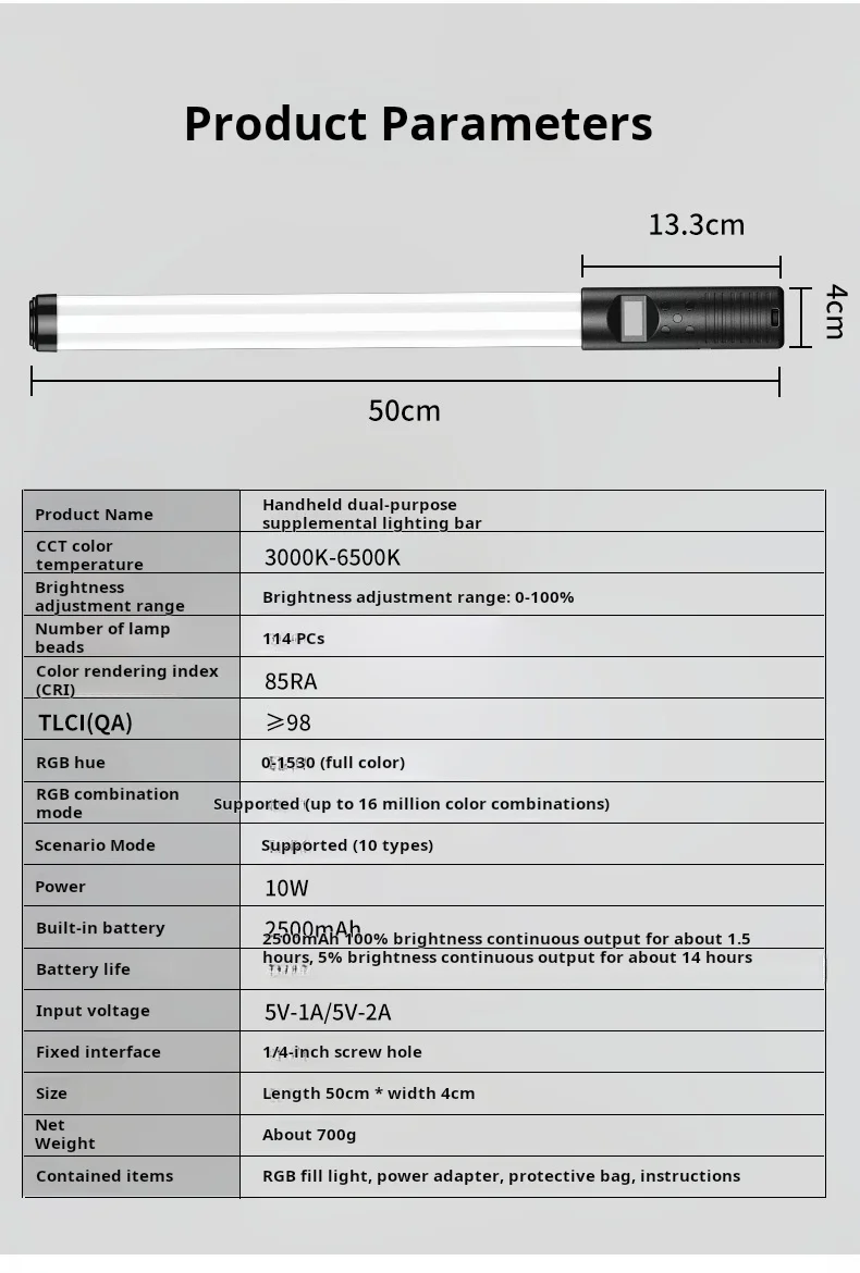 Product model: RGB colorful fill light bar lamp (2600mAh)