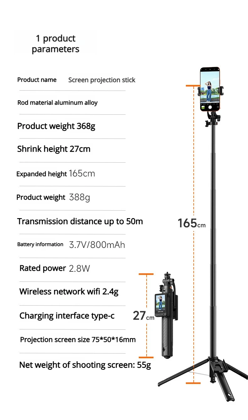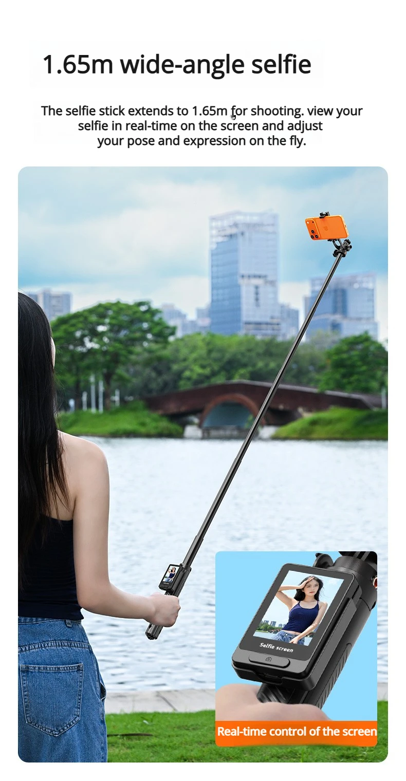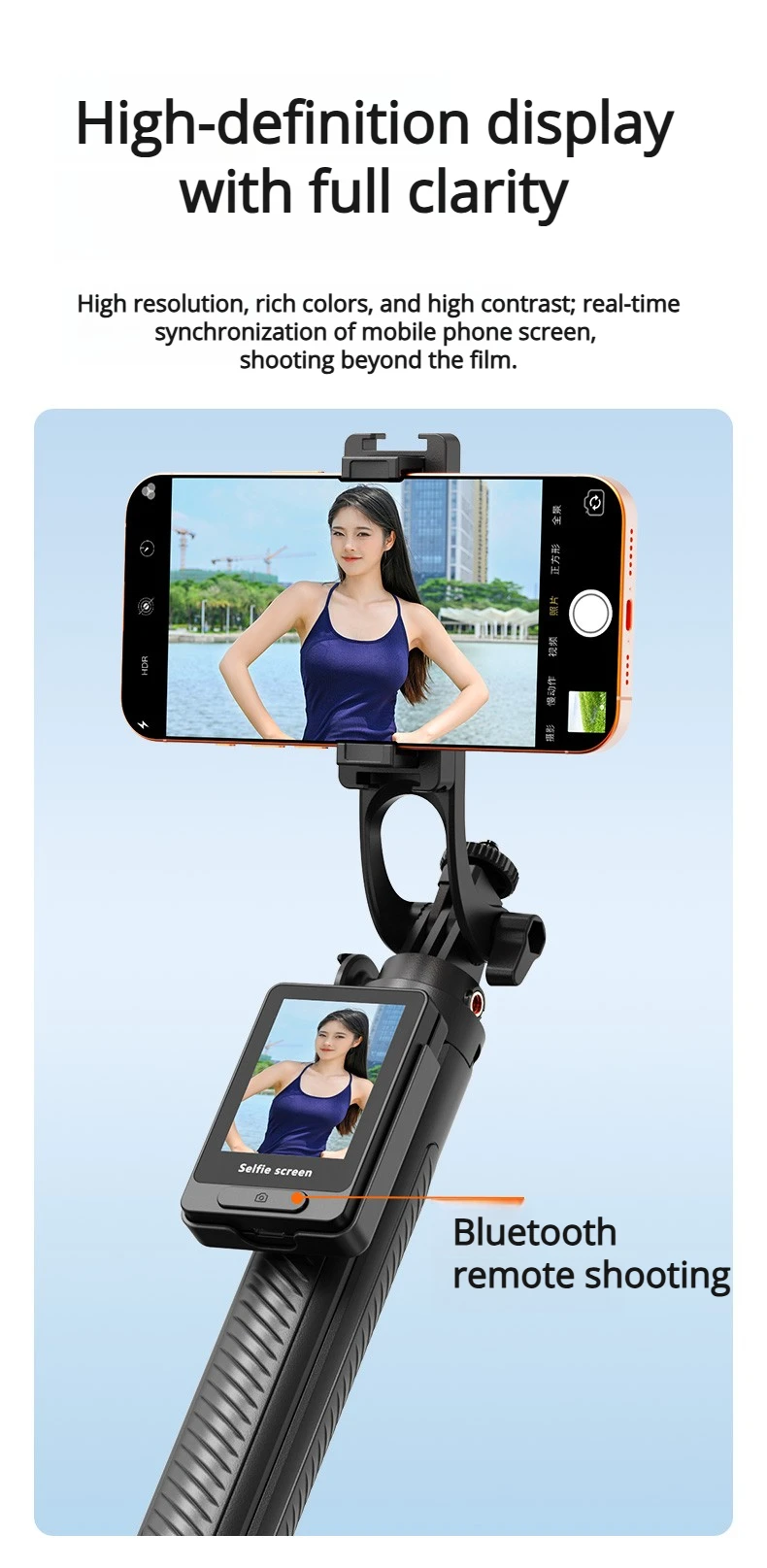 Smartphone Rear Selfie Screen with Selfie Stick Tripod suit.Selfie Pole Real-time Projection,for Vlog/Travel/Selfie/Group Photos