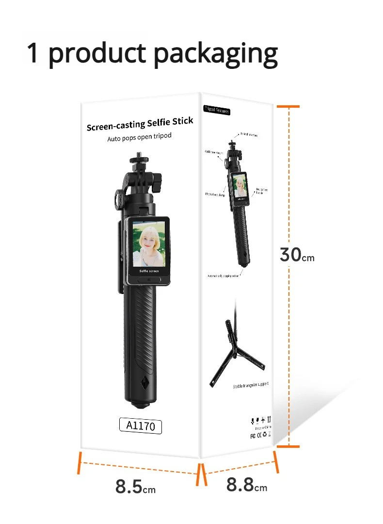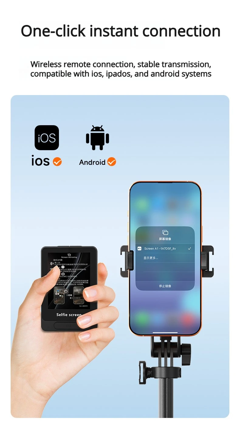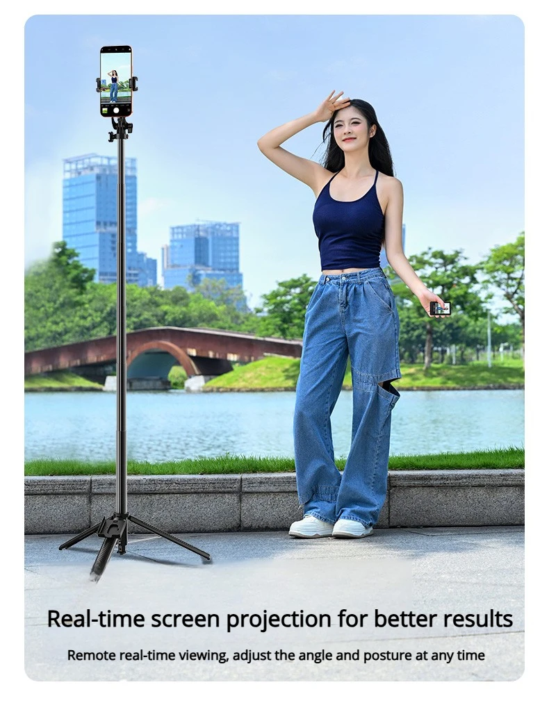 Smartphone Rear Selfie Screen with Selfie Stick Tripod suit.Selfie Pole Real-time Projection,for Vlog/Travel/Selfie/Group Photos