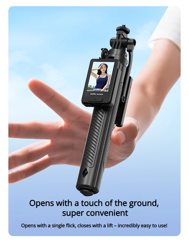 The included selfie stick tripod suit offers versatility, perfect for vlogs, travel shots, and group photos.