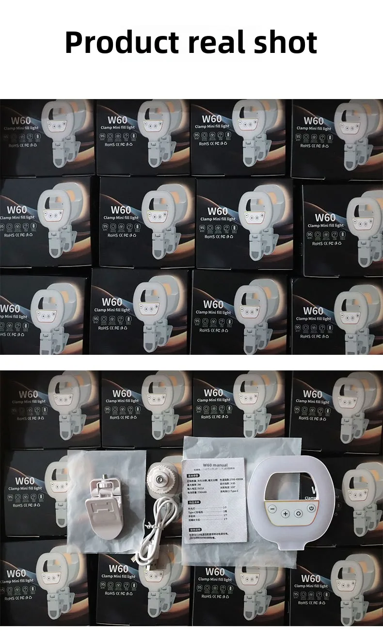 The W60 phone fill light is designed to ensure optimal lighting for selfies and video calls. Utilizing a ring-type design, it provides a harmonious blend of brightness and softness, which helps eliminate harsh shadows. This is particularly useful for creating flawless makeup tutorials or capturing memories with friends. Whether you’re indoors or outdoors, this portable light guarantees that you can always achieve that perfect shot, ensuring your photos stand out.